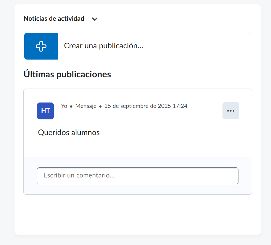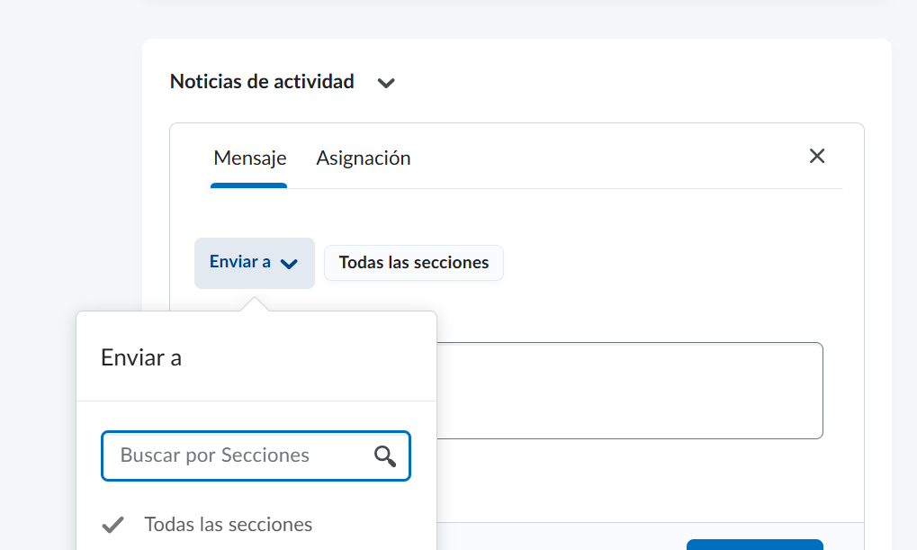 Importante: si tenemos varios NRCs (secciones) en un mismo curso, tenemos la opción de elegir a qué sección se le compartirá la noticia de actividad.