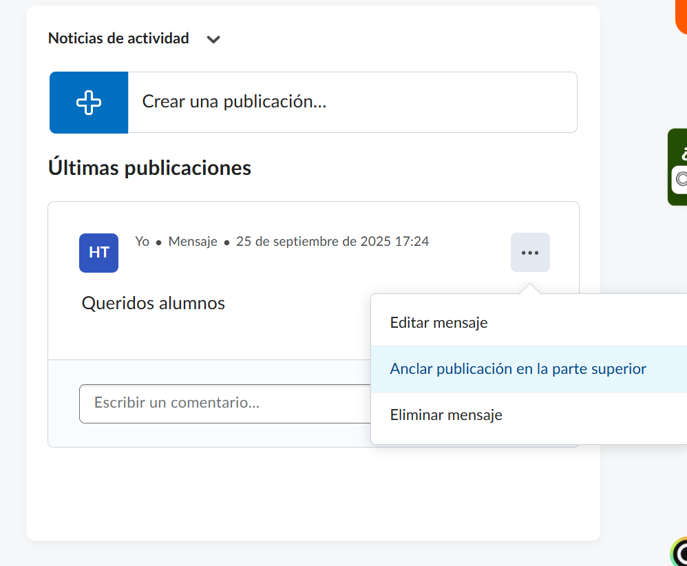 • Anclar publicación en la parte superior: para que el mensaje siempre se vea arriba del resto de los mensajes ya publicados.